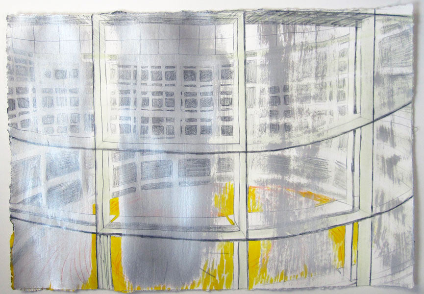 9. SOLD! Getty Research Institute Library (Nitrous Oxide): 14.5" x 10.5" ink, colored pencil, graphite, on paper, 2012