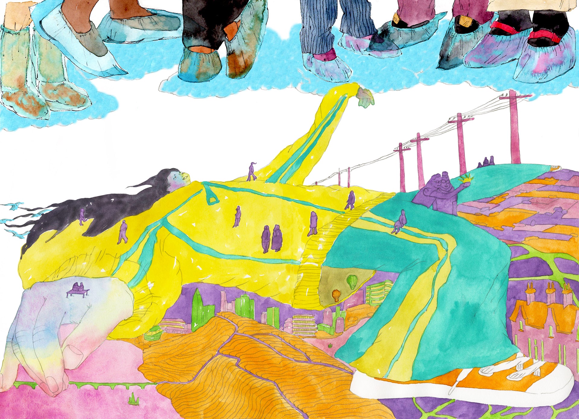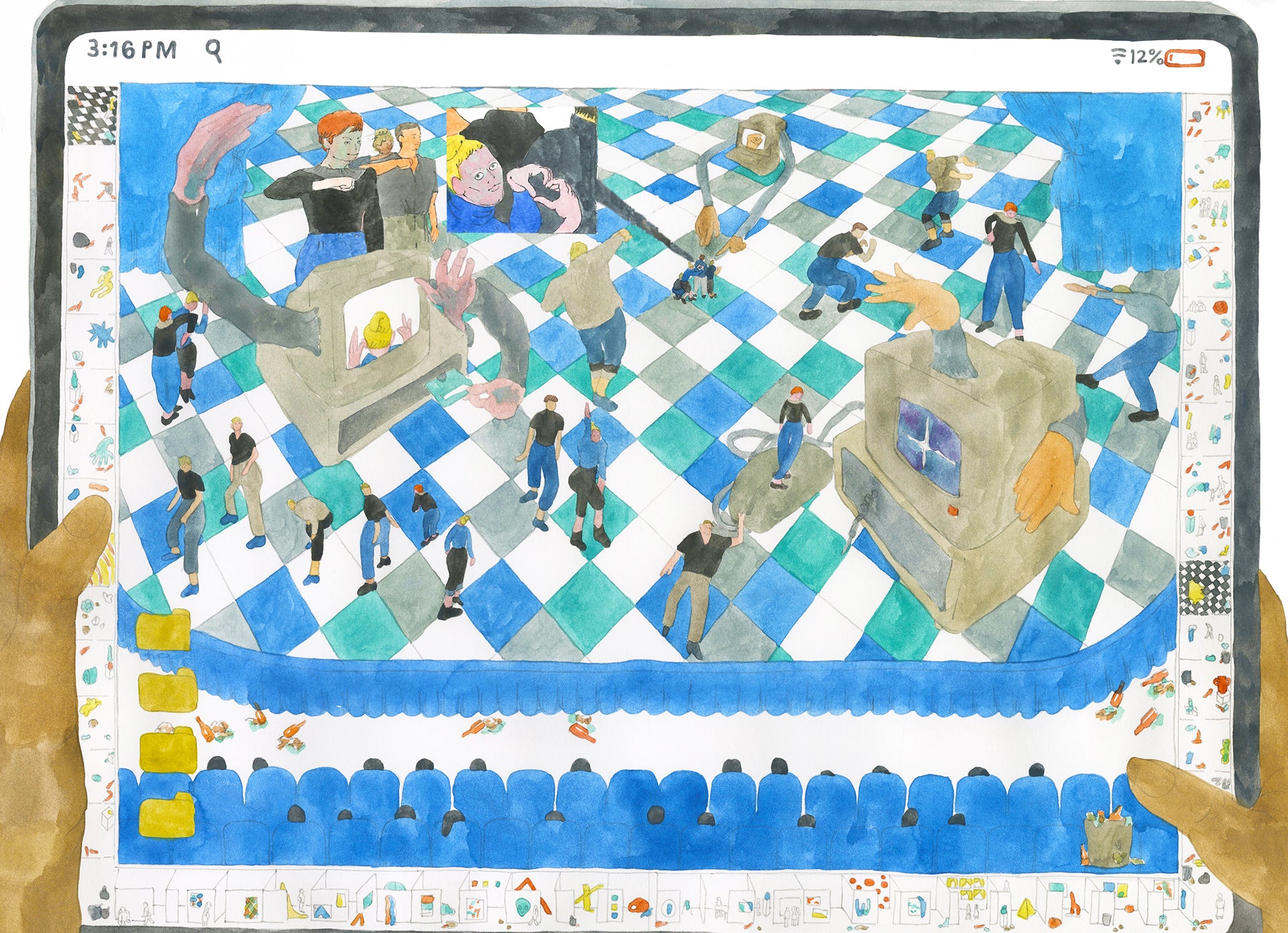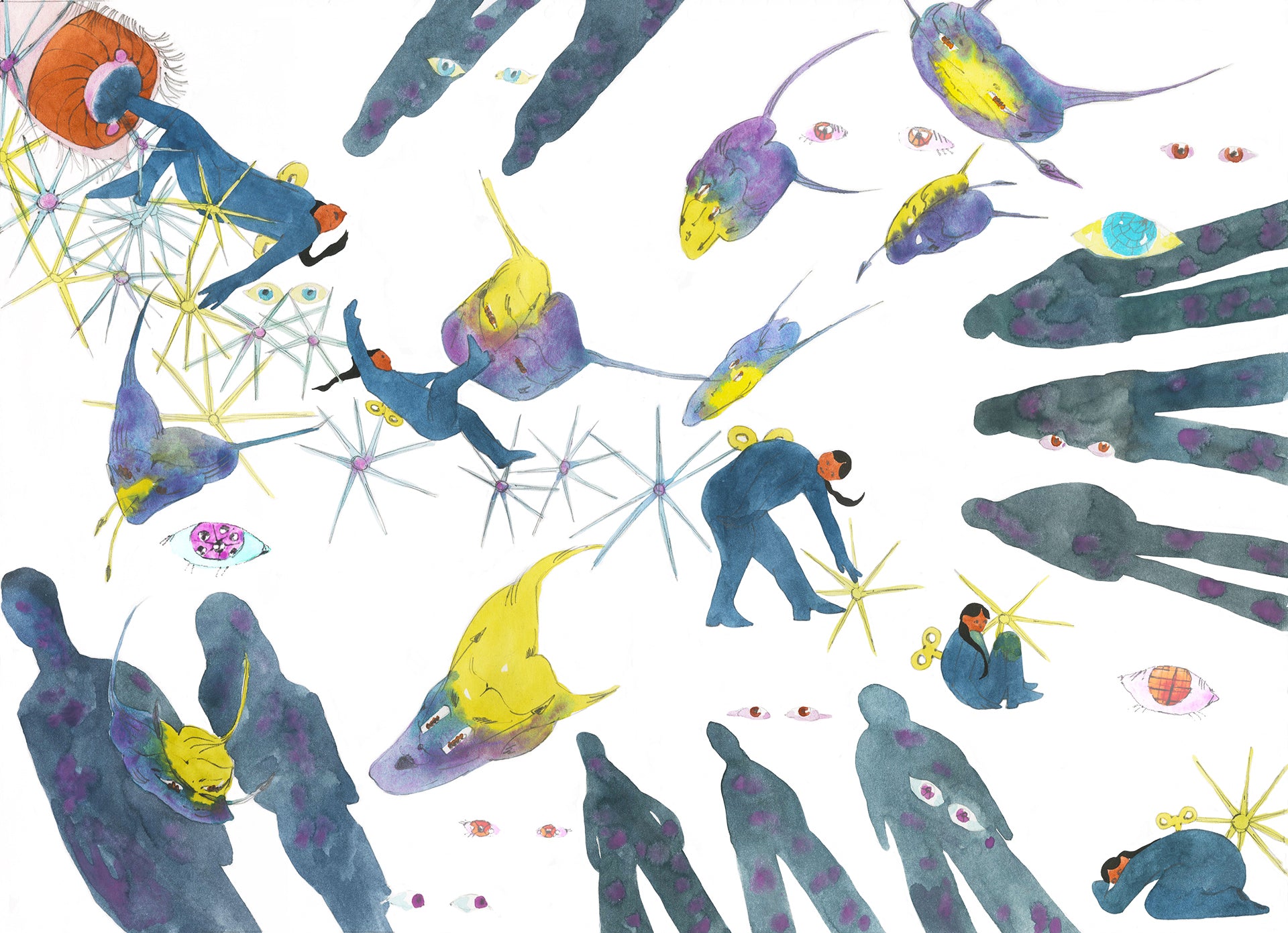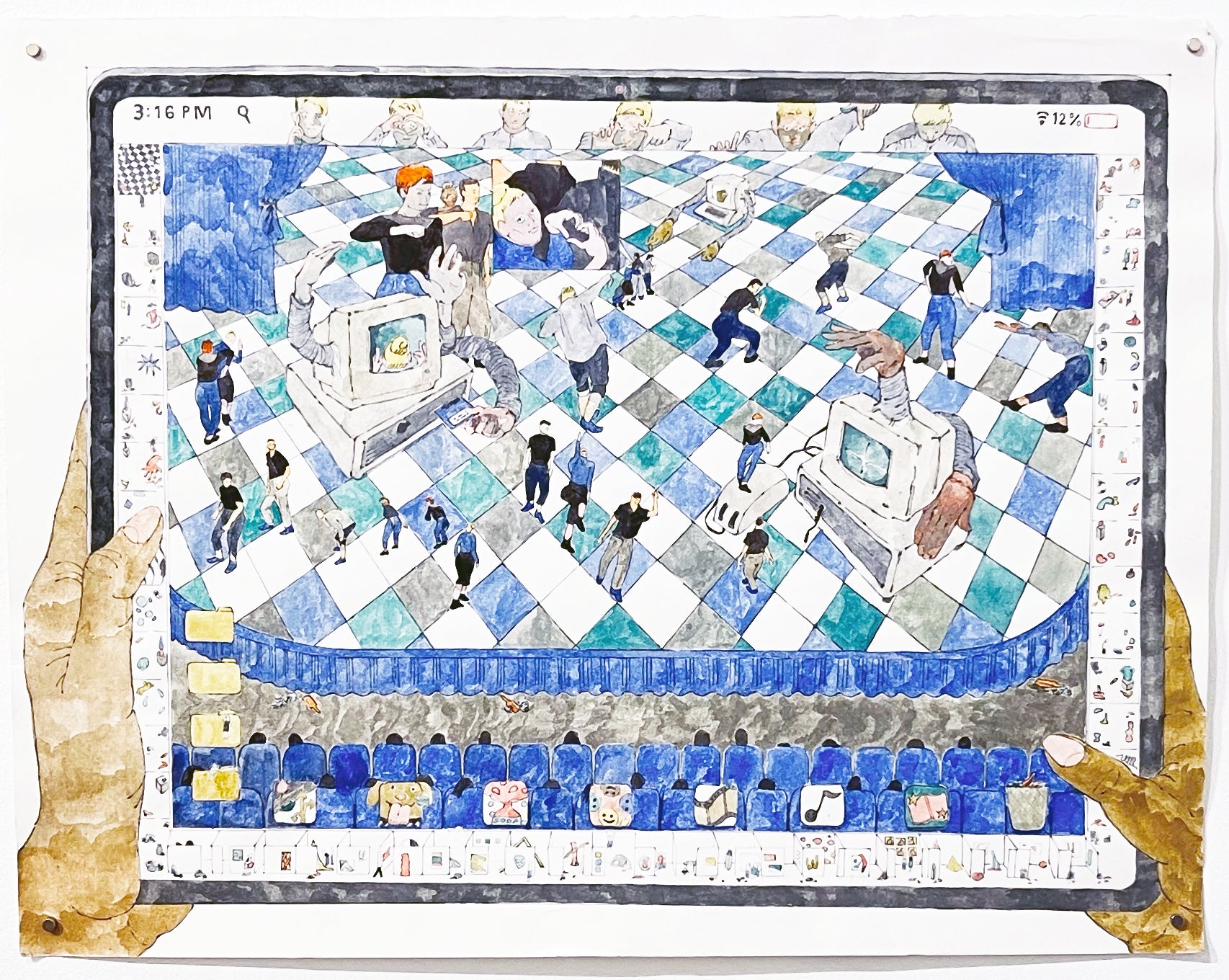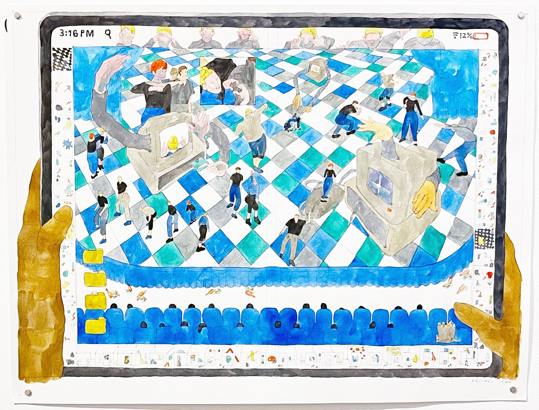 Insert Press is pleased to announce the release of a new edition of prints to accompany Eileen Wolf Echikson's exhibition, Here Sometimes, opening Saturday, December 2, 2023 from 7-10pm and running through February 10, 2024. Echikson’s illustrations are featured in Being Work, a forthcoming book from Insert Press, edited by Dorothy Dubrule. A collection of essays by dance and theater artists that describe the labor of performance within visual arts contexts, Being Work captures a spectrum of profound and mundane moments while asking how this kind of gig work is perceived and valued. Echikson’s eight illustrations for the book can be viewed alongside additional works by the artist in the exhibition Here Sometimes at General Projects.