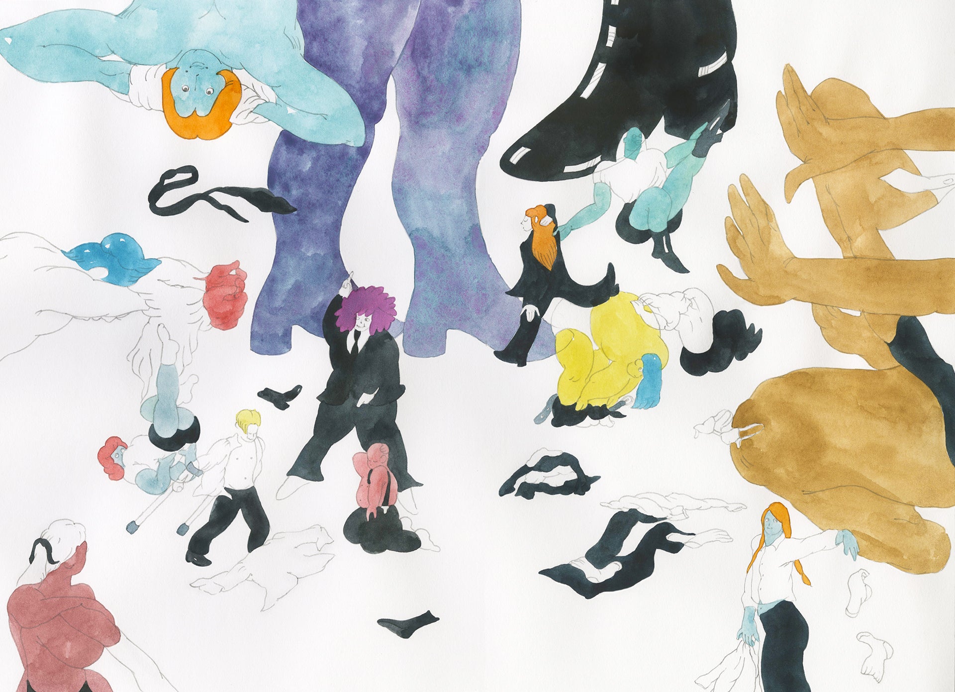 Here Sometimes offers a captivating escape, beckoning viewers into the realm of daydreamers. Echikson's illustrations serve as portals into their own waking existence, seamlessly merging reality with a meticulously crafted realm nurtured since childhood. Echikson transports the viewer to a new place with its own lifeblood fueled by comics, friendship and memory. The exhibition pays tribute to the artist's enduring appreciation of friends and individuals who have come in and out of the artist's life, embracing those little abandonments and departures that lead to new paths and transformation.