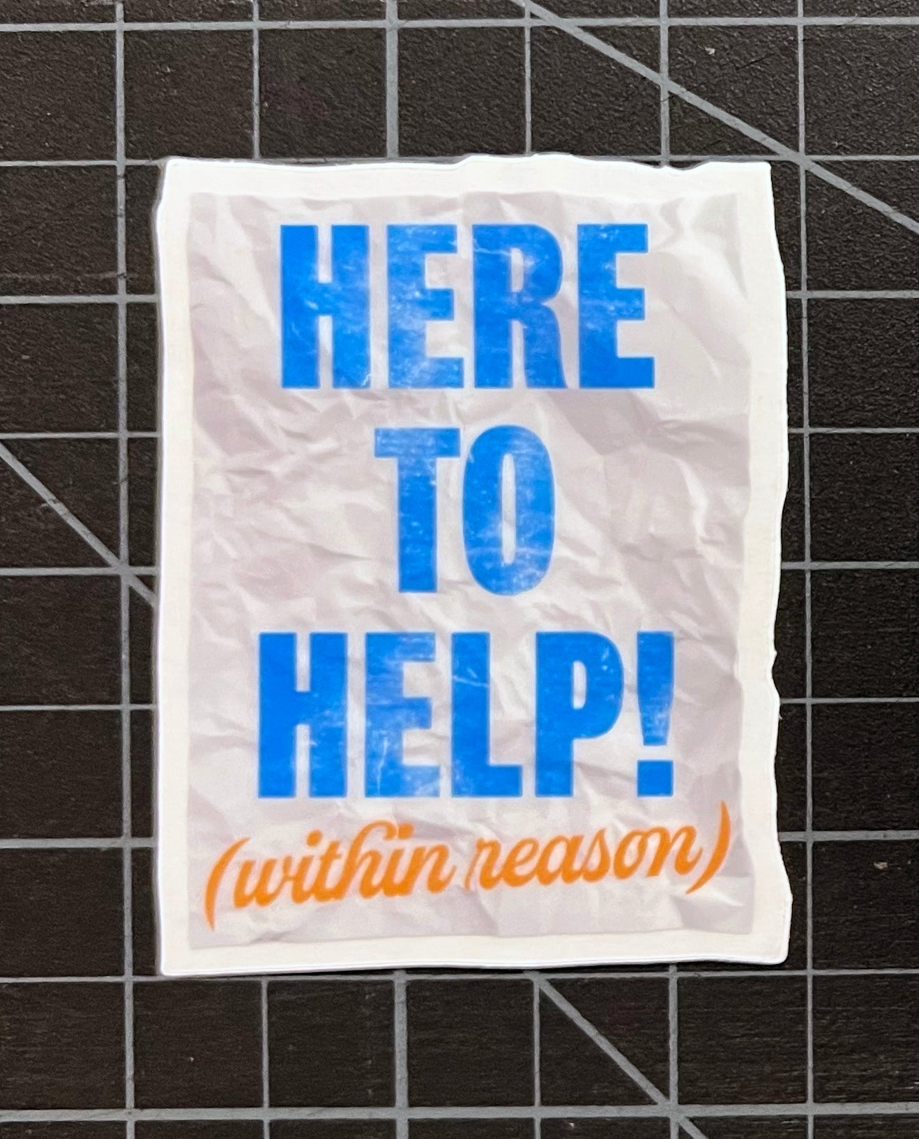 Here to Help! (within reason) - Clear Die Cut Sticker